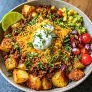 This Loaded Potato Taco Bowl isn’t just a recipe; it’s a warm embrace on a chilly evening. The crunchy potatoes, savory meat, and colorful toppings come together to create a perfect symphony of comfort and flavor. Whether you’re gathering the family for dinner or cozying up for a night in, this bowl of goodness will warm your heart and satisfy your cravings.